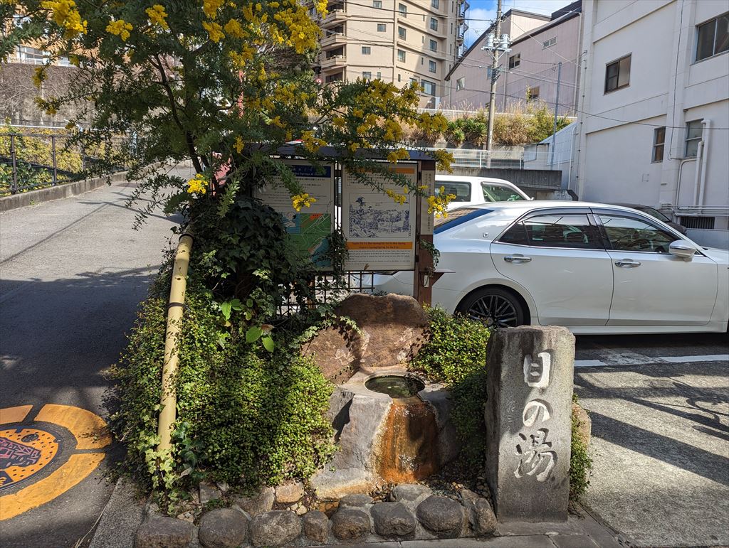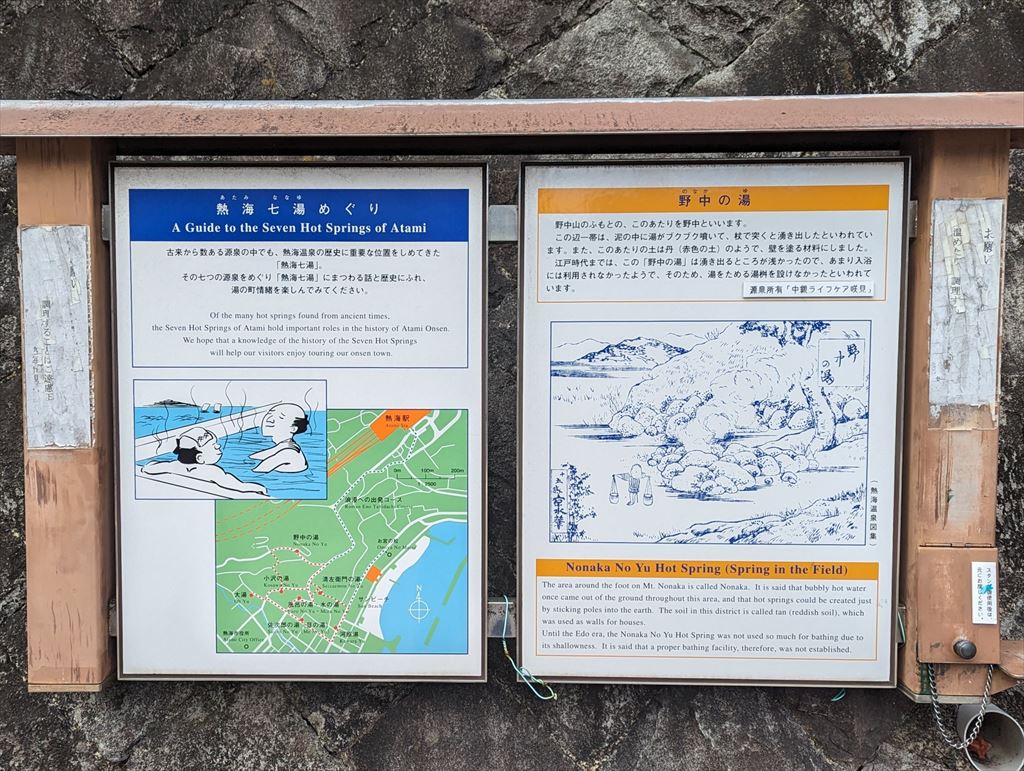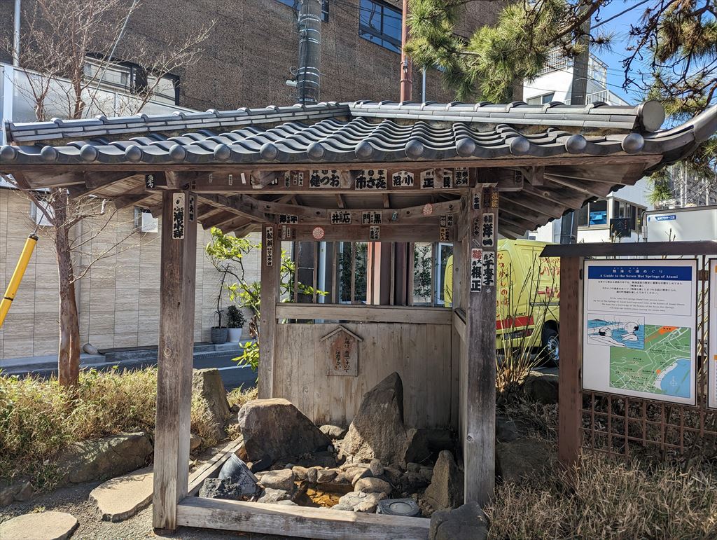 源泉の横には「熱海七湯めぐり」の看板もあった。