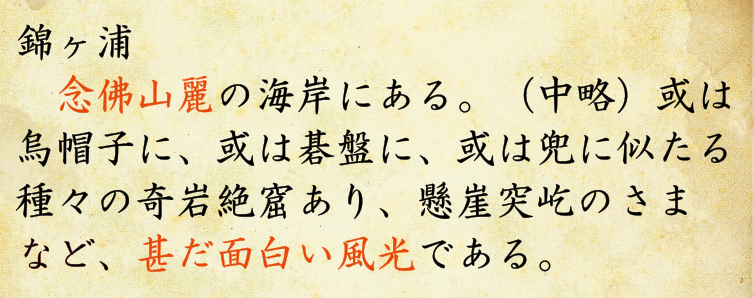 さて、次は観光地の定番である「自然」だ。熱海には「錦ヶ浦」という名所があるらしい。