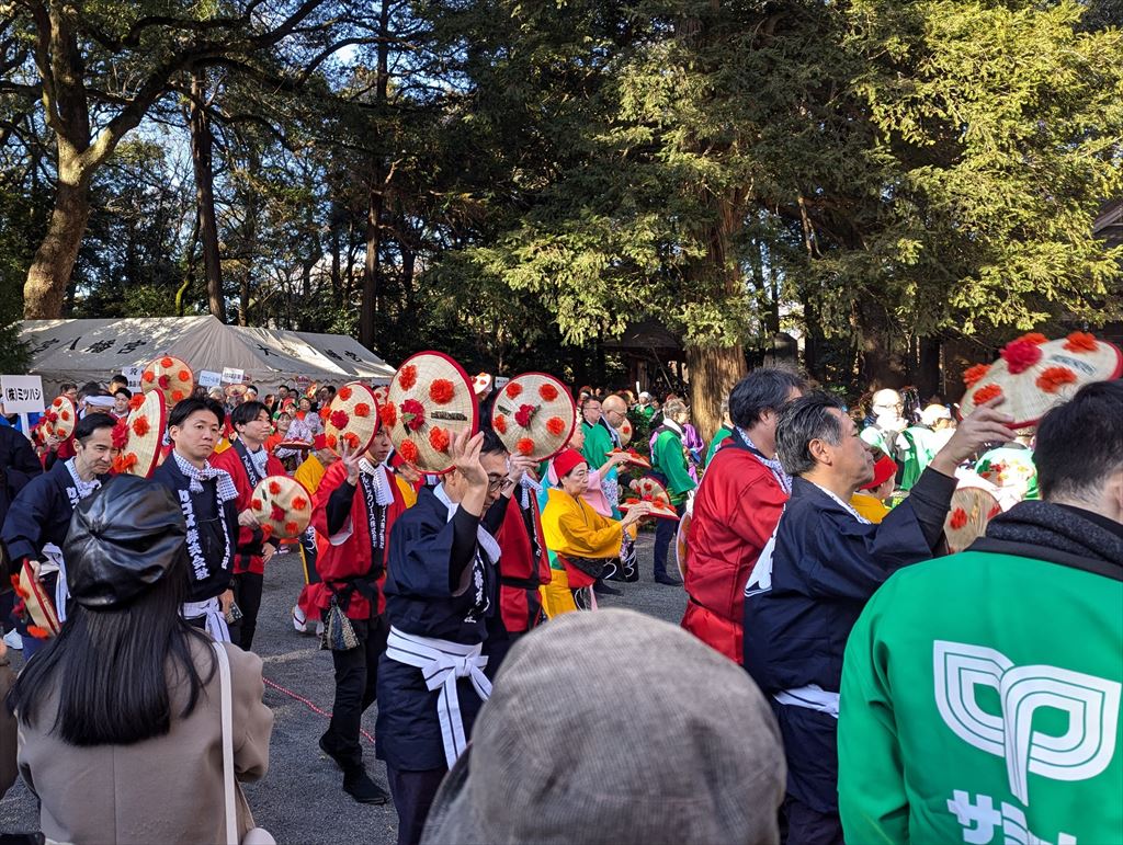 奥には踊りを終えて笑顔の大人たち。